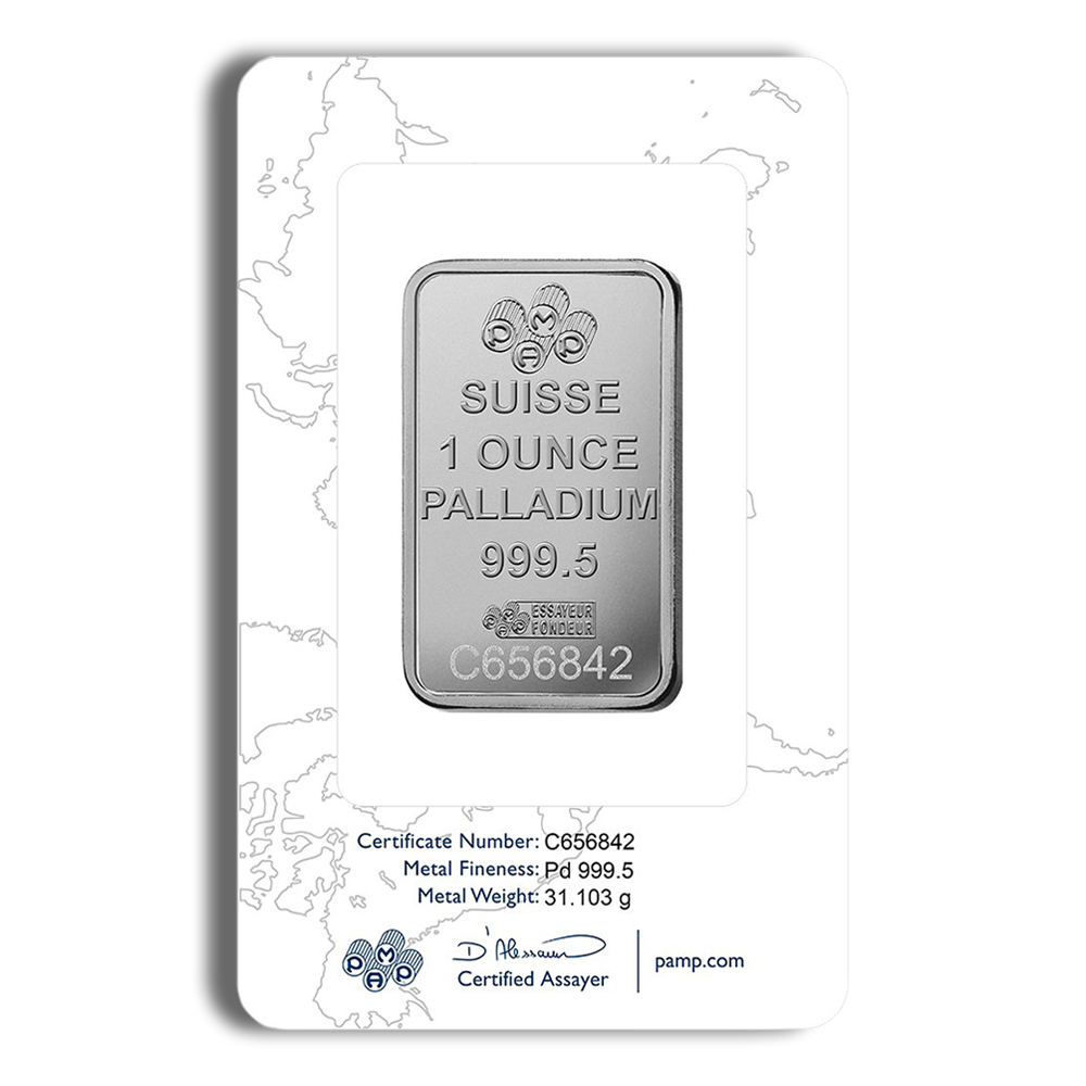 The 1 oz Palladium Bar – PAMP Fortuna (Carded) stands as a symbol of prestige and refined taste. Crafted by the renowned PAMP Suisse, this bar features the iconic Lady Fortuna, the Roman goddess of fortune, elegantly embossed on its surface. Each bar is meticulously struck from .9995 fine palladium, ensuring exceptional purity and quality. The sealed assay card guarantees authenticity and protects the bar from handling and environmental damage.